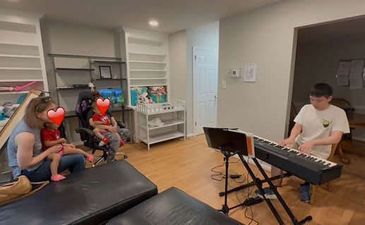 Listeners fanned out in the living room, gathering around the digital piano. The recital explored works by Chopin, Rachmaninoff, Beethoven, Kahn, and Scriabin. After each piece, audience members enthusiastically clapped and cheered. They expressed that the music had been an extremely special and rare experience for them. HMO was also delighted to interact with the young children.